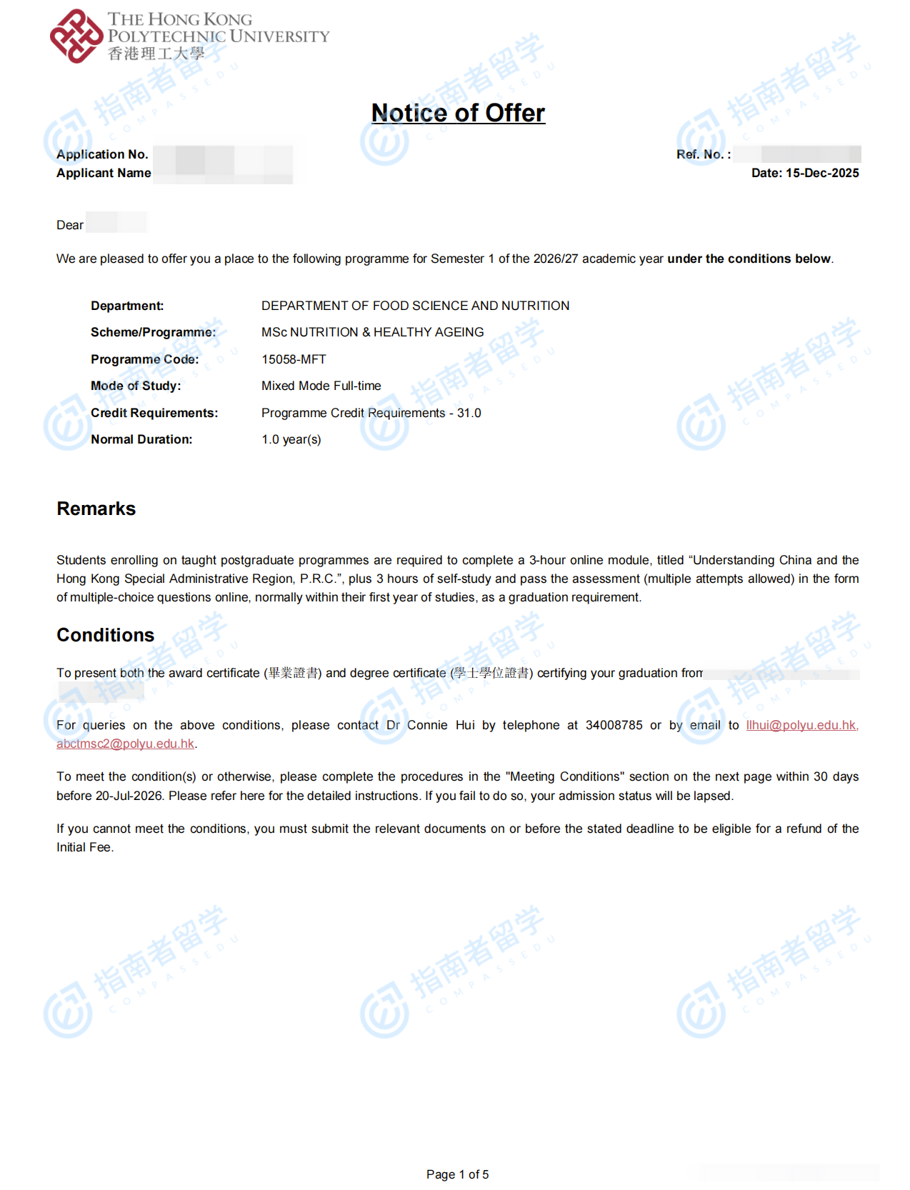 香港理工大學(xué)營(yíng)養(yǎng)與健康活齡理學(xué)碩士研究生offer一枚