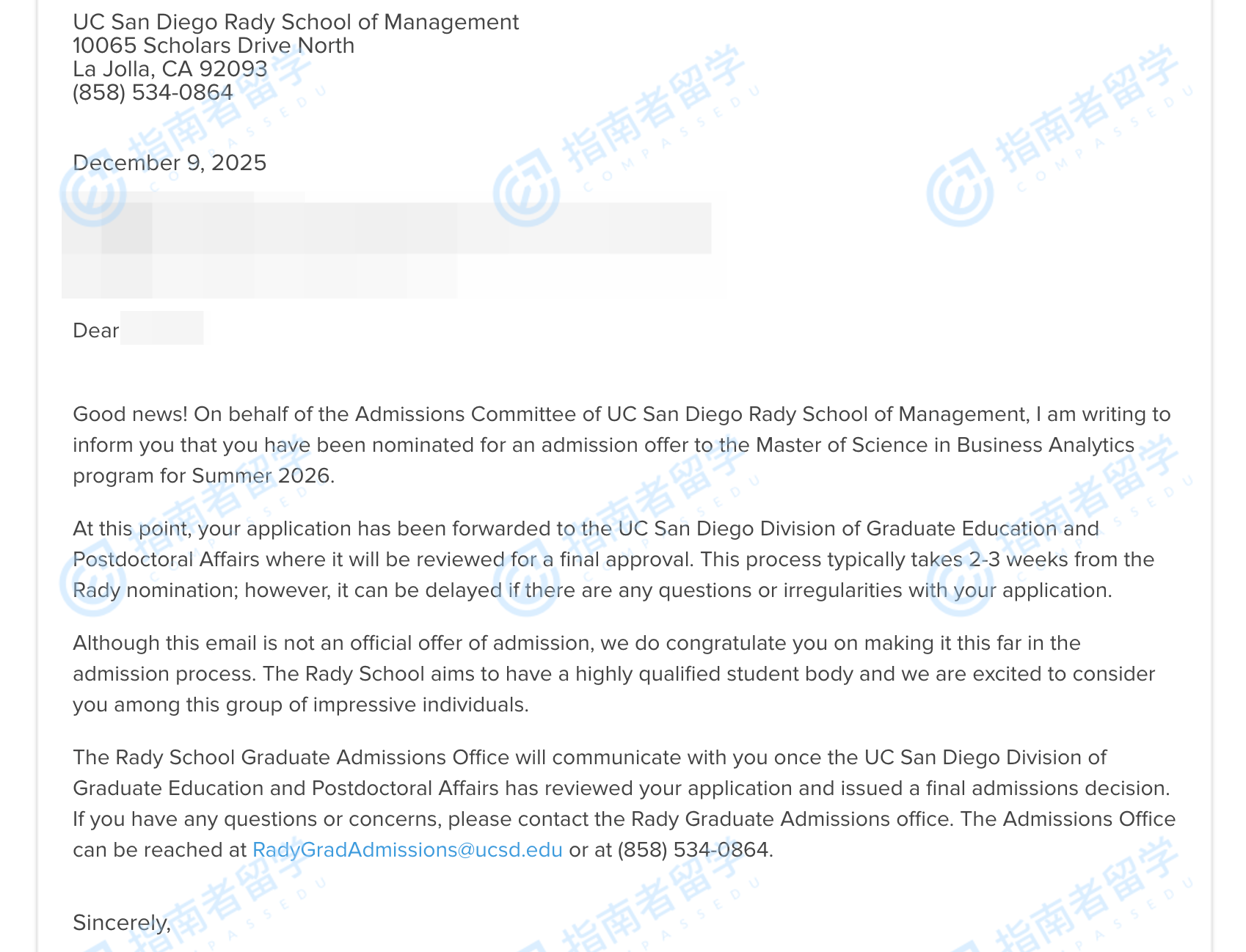 加州大學(xué)圣地亞哥分校商業(yè)分析碩士研究生offer一枚