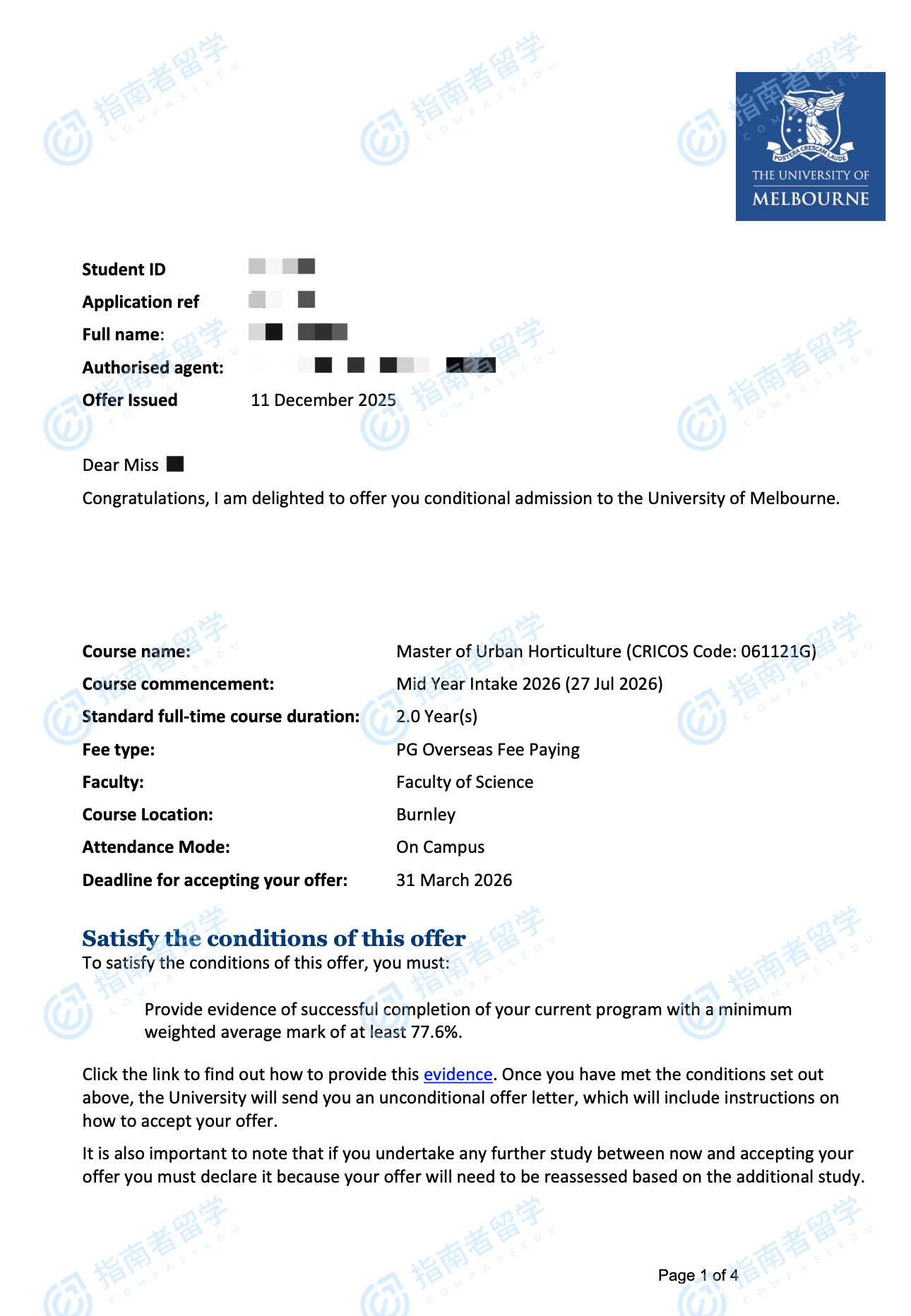 墨爾本大學(xué)城市園藝碩士研究生offer一枚