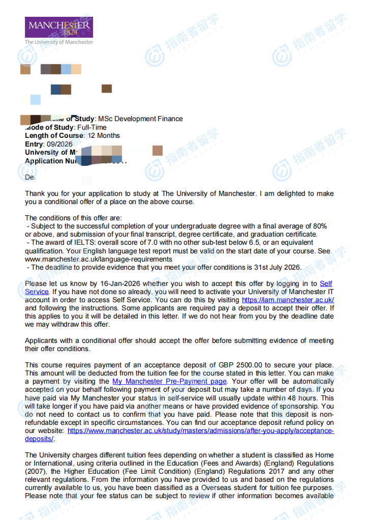 曼徹斯特大學(xué)發(fā)展金融學(xué)理學(xué)碩士研究生offer一枚